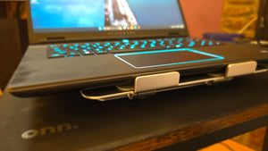 Suportul este fabricat din aluminiu rezistent și poate susține până la 10 kg, oferind stabilitate și siguranță pentru laptopuri grele.